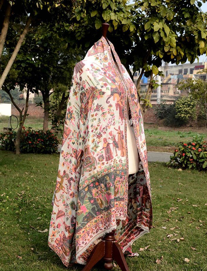 Woolen Pashmina Shawl with Kani Outline
